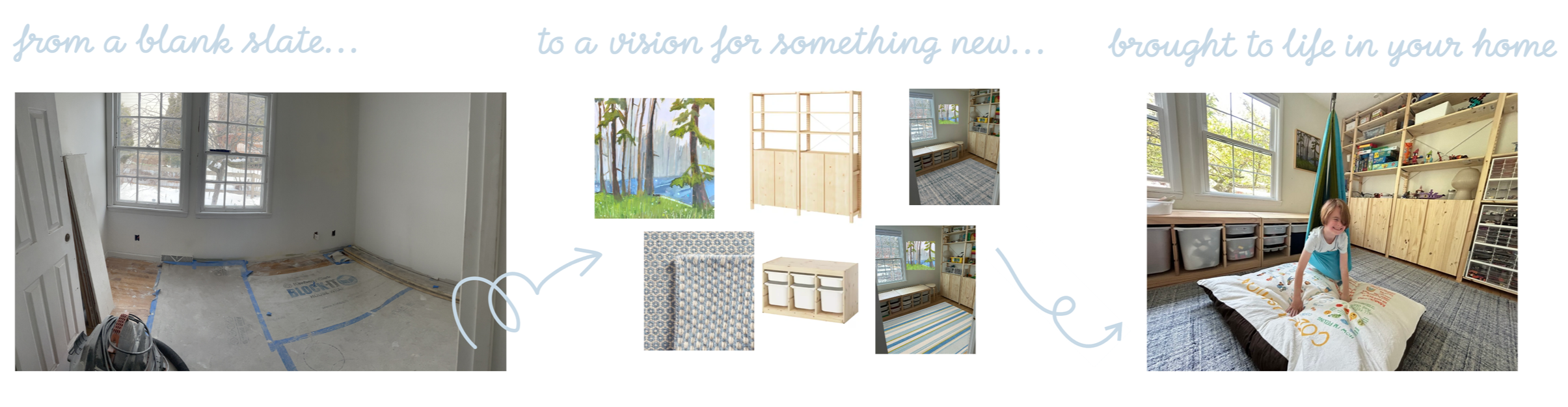 Every project begins with a conversation. From there, mood boards and thoughtful space planning come together to create a clear, cohesive vision - one that reflects your family’s style, needs, and the way you truly live. see some of our featured projects below: petit playroom office craft combo