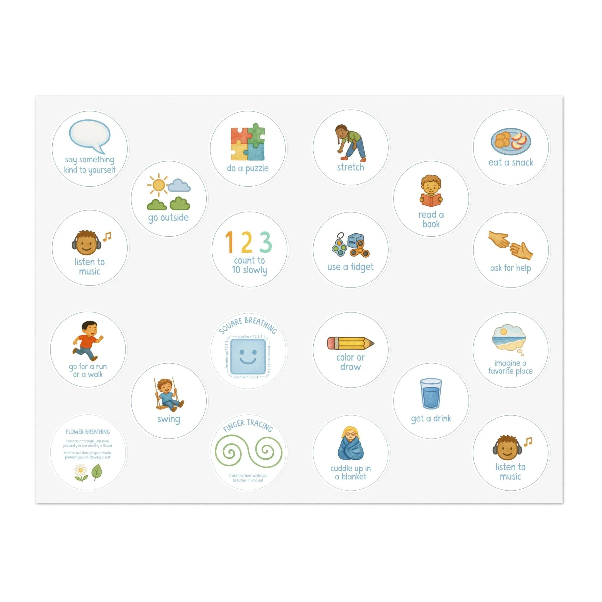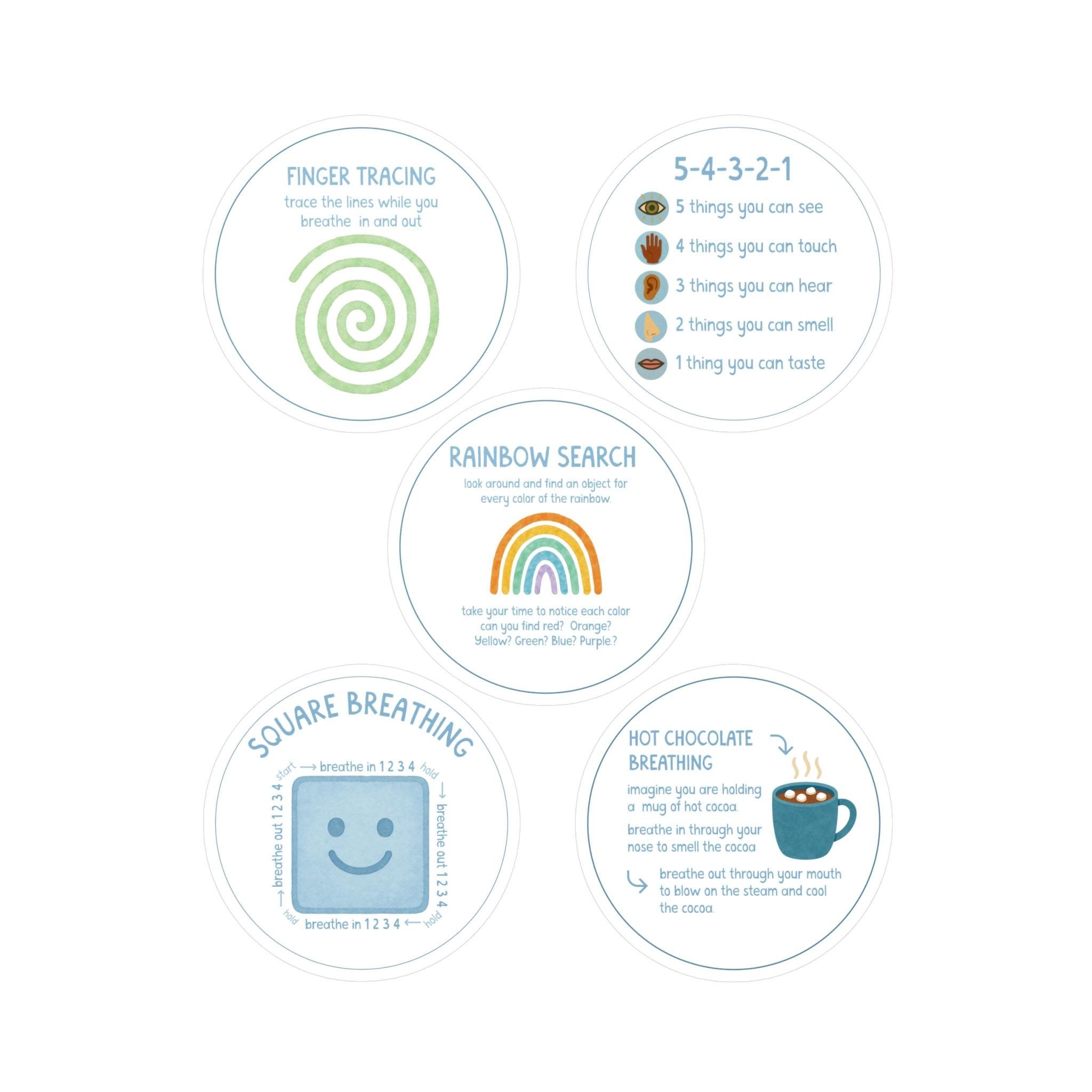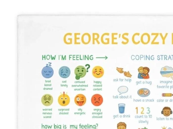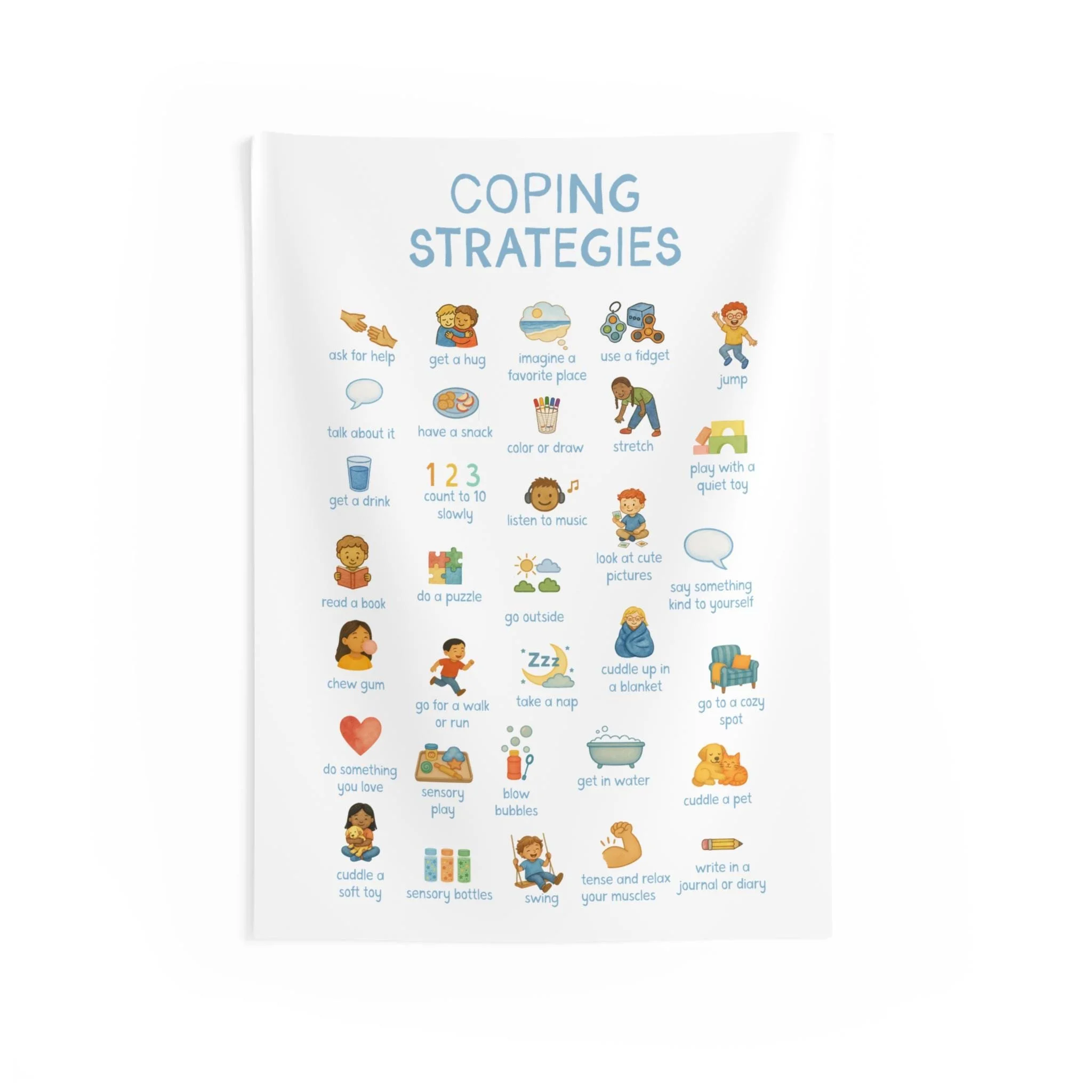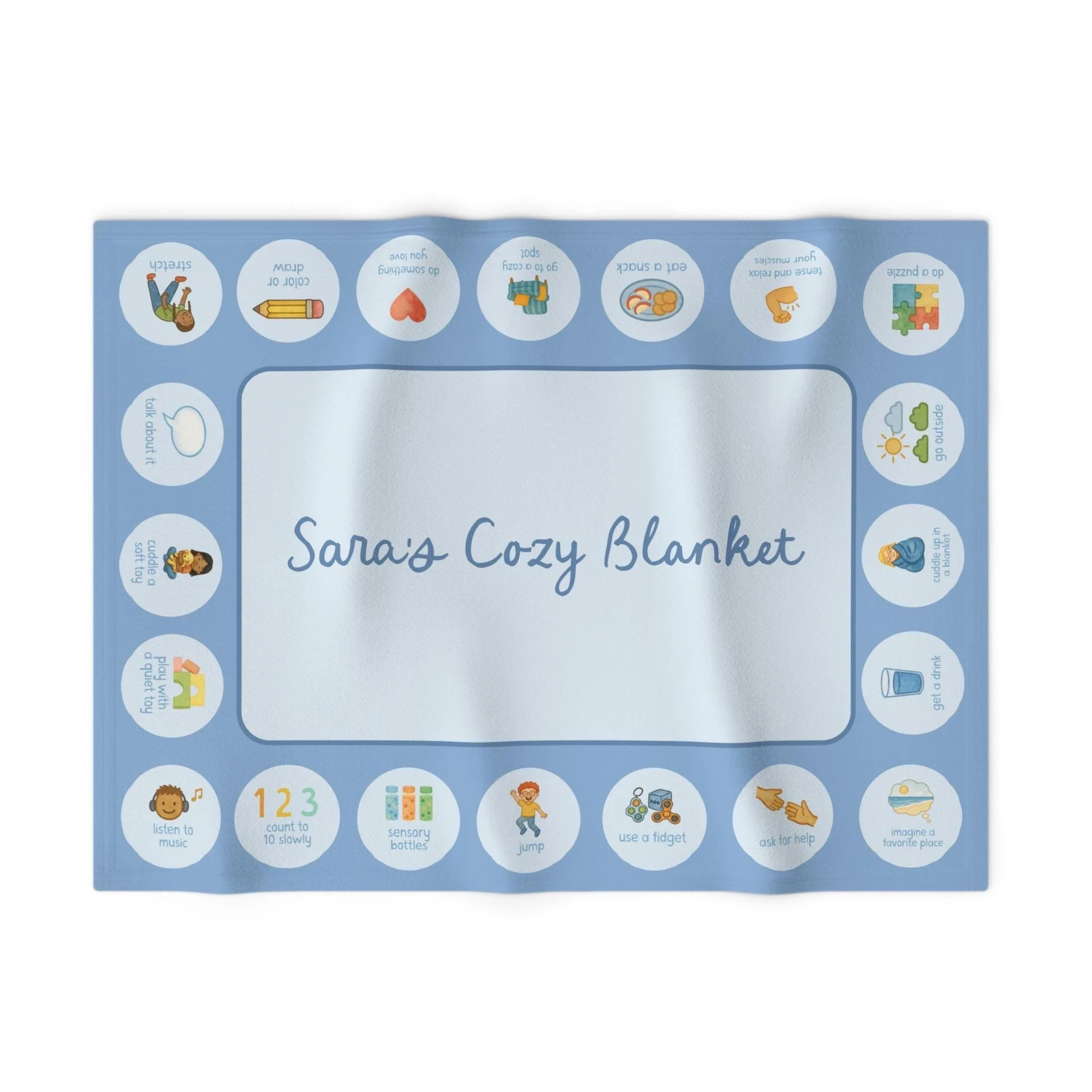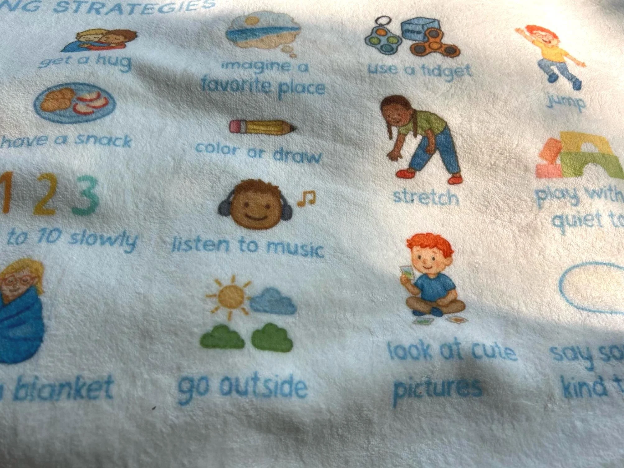 calming choices blanket with feelings chart, coping strategies, grounding techniques