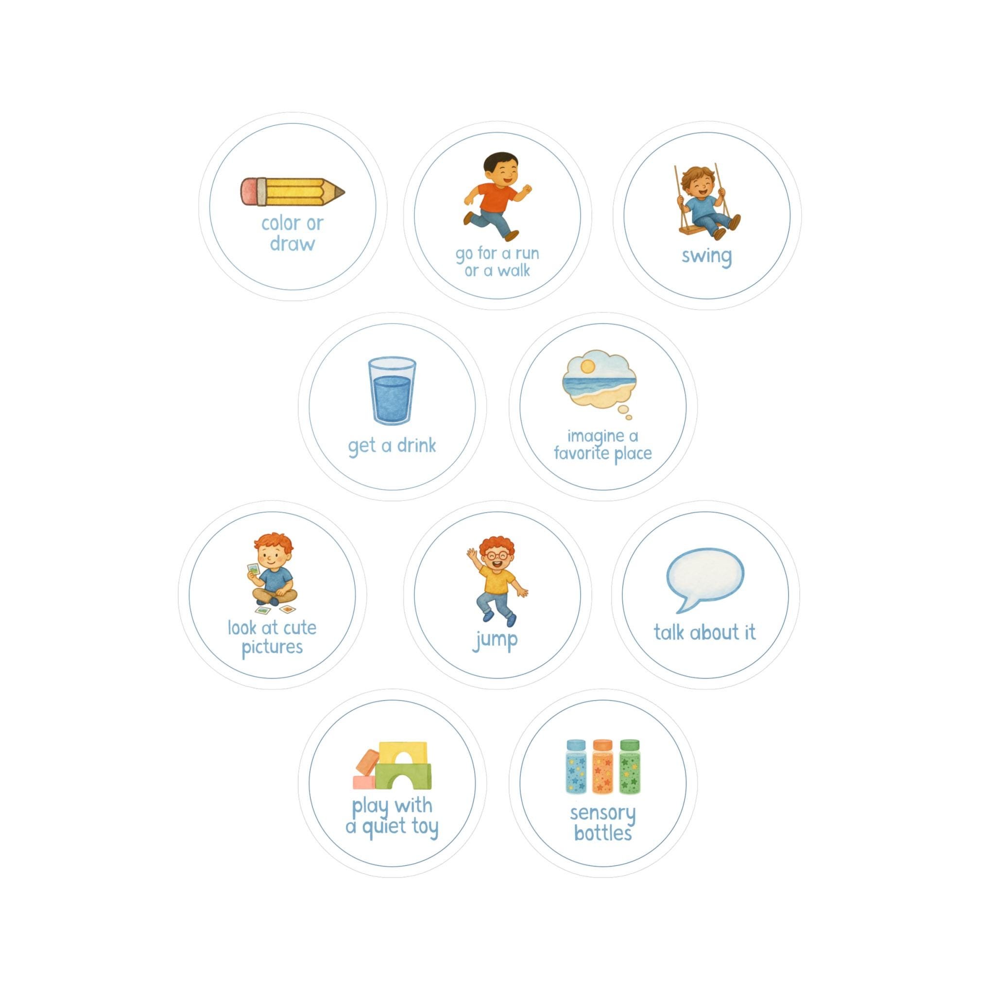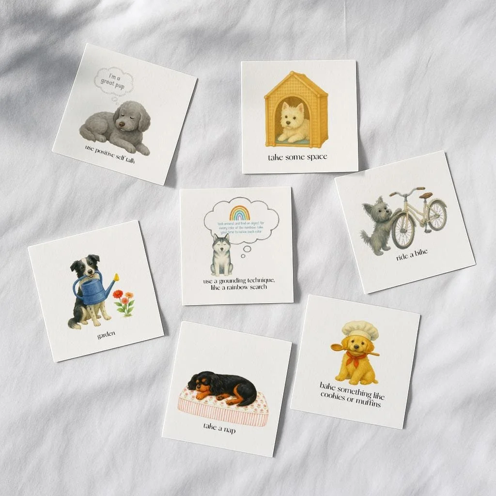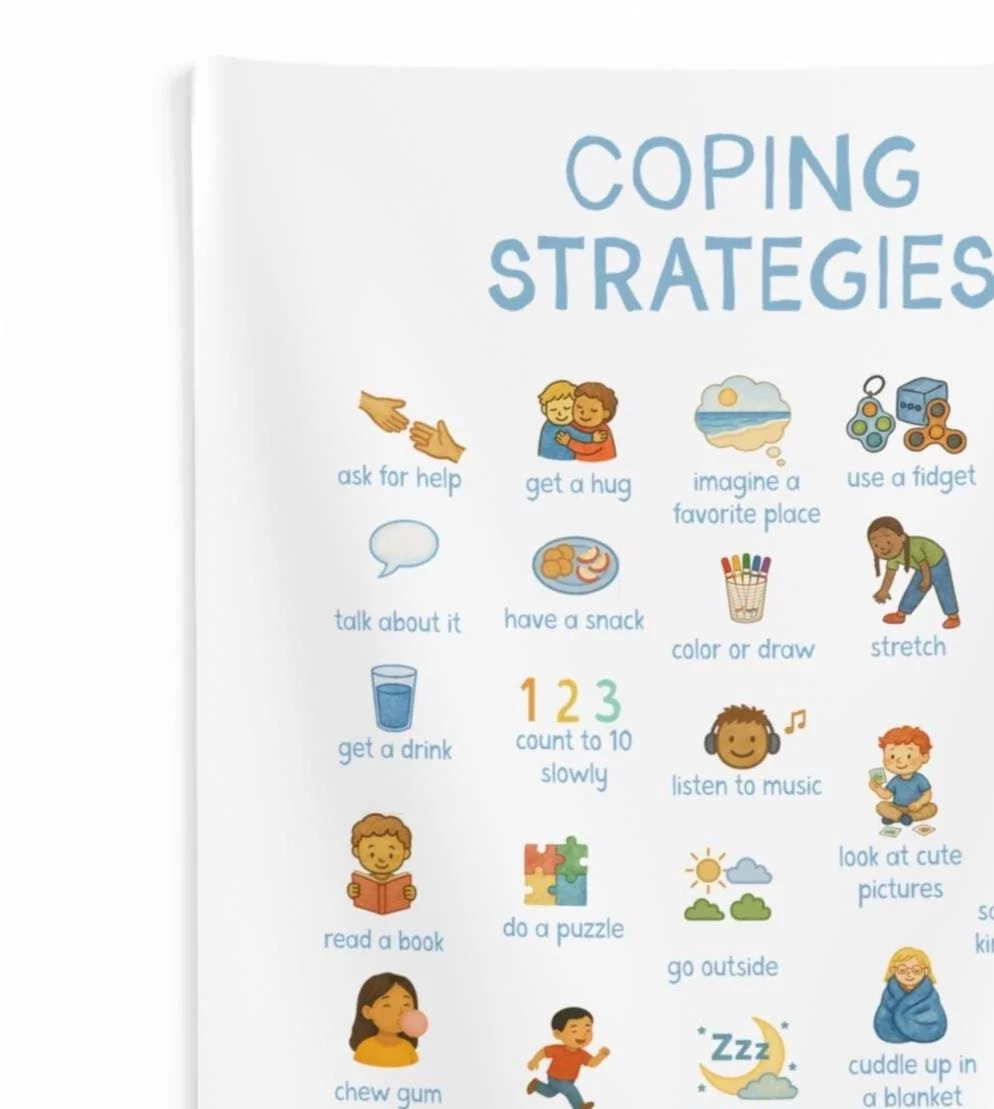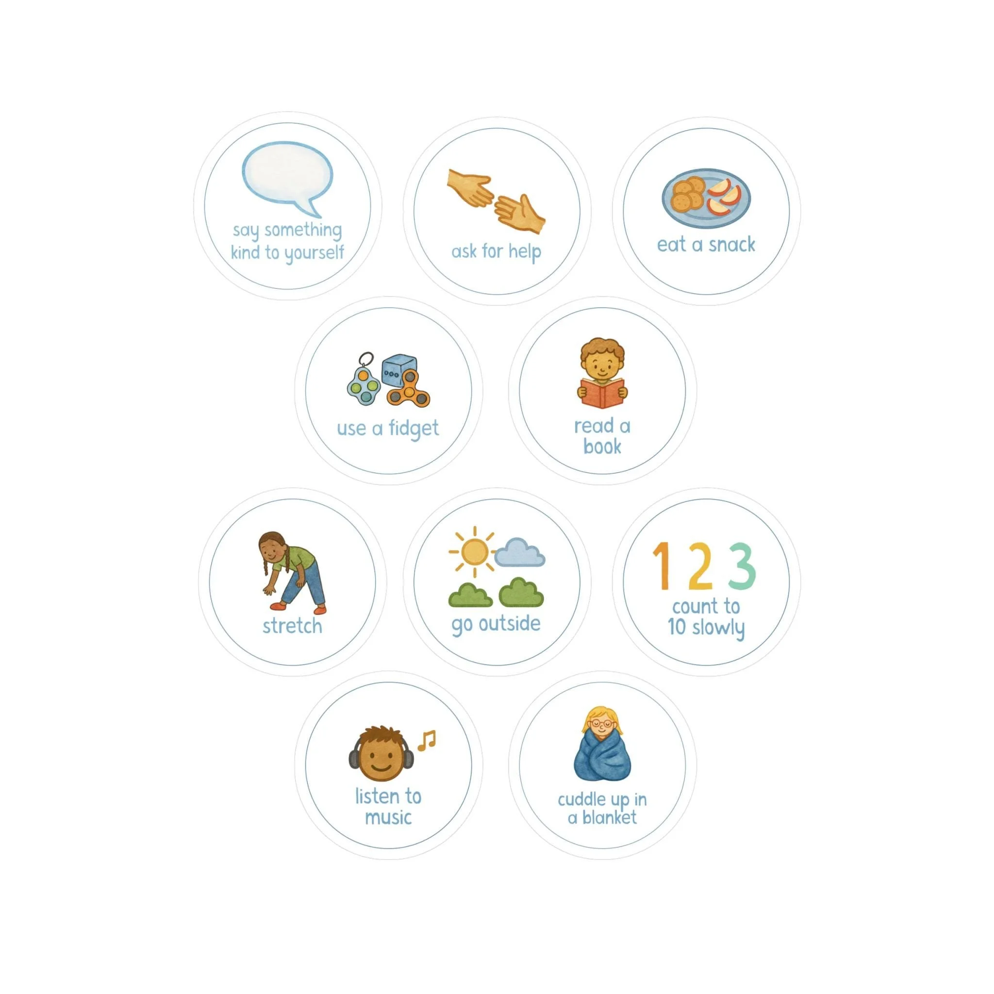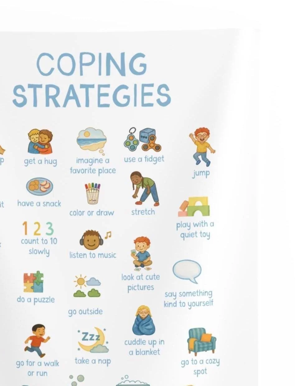 calming choices blanket with feelings chart, coping strategies, grounding techniques